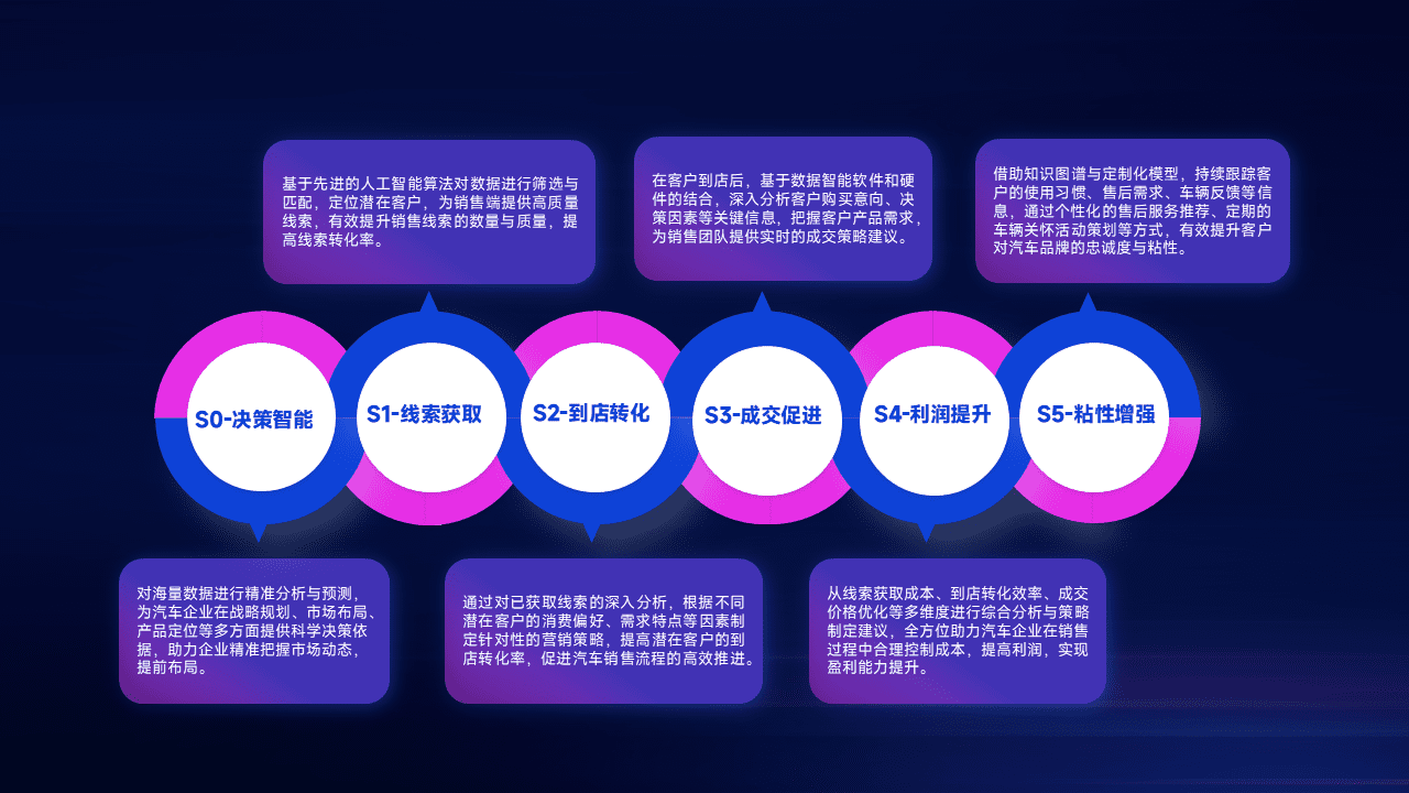 通过拓宽潜在客户来源、、、、优化线索分配并提高到店转化率,,,,以增强销售效率。。同时,,,,利用线索数据不断优化分析模型,,,,有效提升转化率,,扩大营销影响力。。